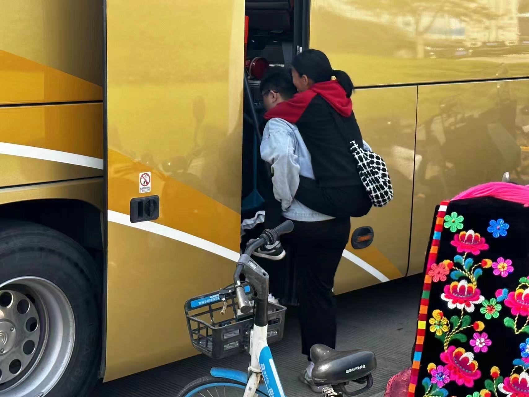“嬢嬢腿脚天生缺陷,无法正常走路。22日那天我们去看比赛场地,由于大巴车只能等在义乌国际博览中心外面,有很长一段距离要走,我就背起了她。”詹睿告诉记者,听说自己背嬢嬢的照片被发到好几个群,他还有点不好意思,“背嬢嬢其实是很自然的事”。