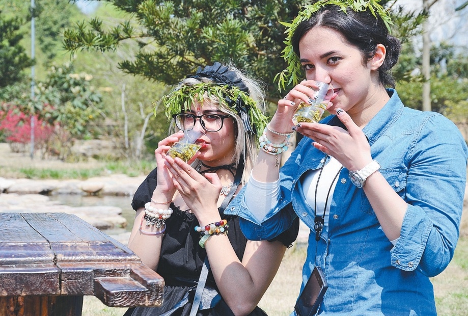 国际友人品茗义乌当地的毛店新茶