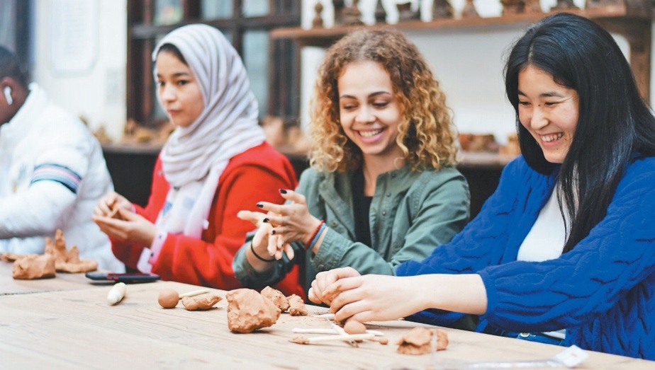 就读于义乌工商职业技术学院的学生在义乌市缸窑村体验陶艺
