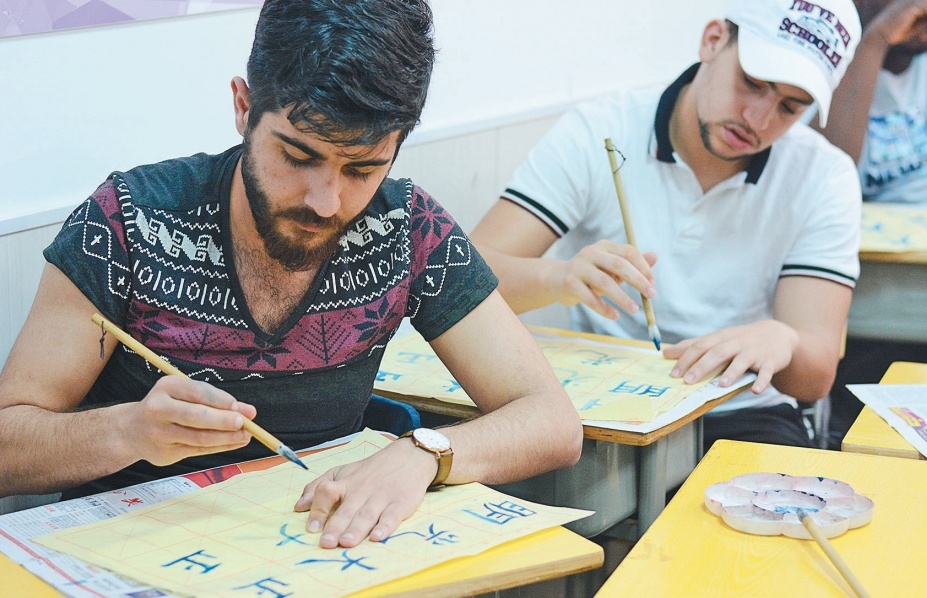 学习中国的毛笔字,体验“汉字之美”,已经成为在义国际友人的一种时尚生活