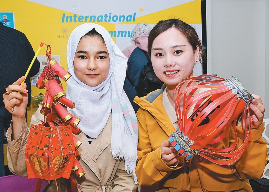 阿富汗女孩丽娜(左),不仅会说流利的汉语,还能做精美的手工