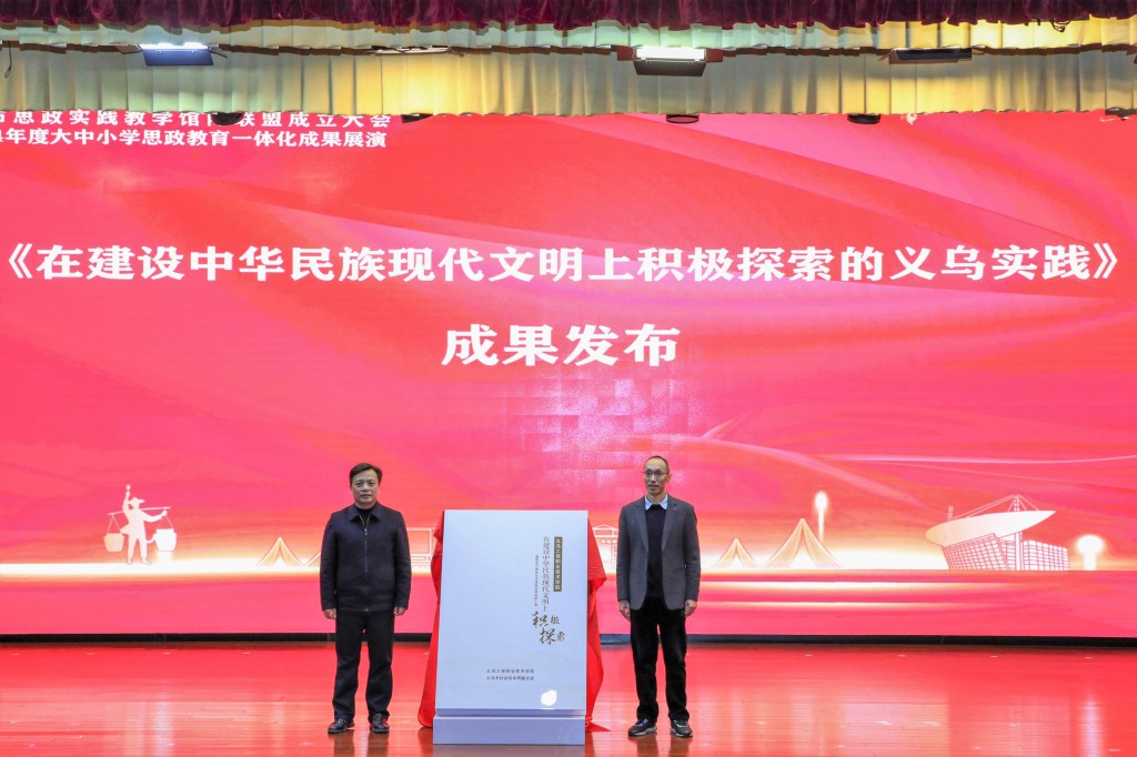叶斯源与楼勇军共同为《在建设中华民族现代文明上积极探索的义乌实践》成果揭幕。