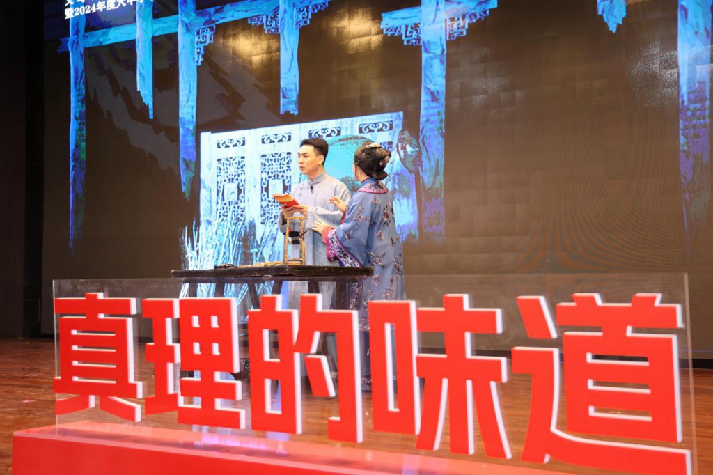 在“真理的味道”大思政课展演环节,浙江婺剧艺术研究院表演了婺剧《陈望道》,该剧紧紧围绕陈望道在翻译、传播、实践《共产党宣言》的过程中坚定信仰这一主线,把分水塘村作为旧中国的一个缩影,以小见大,有巨有微,把《共产党宣言》中最有价值的精神形象地告诉观众,呈现了“一个人翻译了一本书,一本书武装了一群人,一群人改变了中国的命运”的主题。