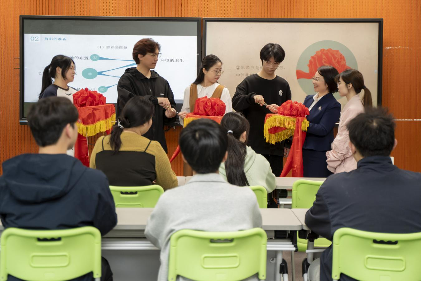 “一根红绳,沿着一定的编织规则,变成了我手中的中国结。做人也是同样道理,贵在守责。”钱志芳一边说,一边手指翻飞,红绳在她手中穿梭盘绕,渐渐显出一个中国结的雏形。她将编织过程巧妙融入课程讲解中,用红绳牵引出课堂主题,让抽象的理论在指尖变得生动可感。