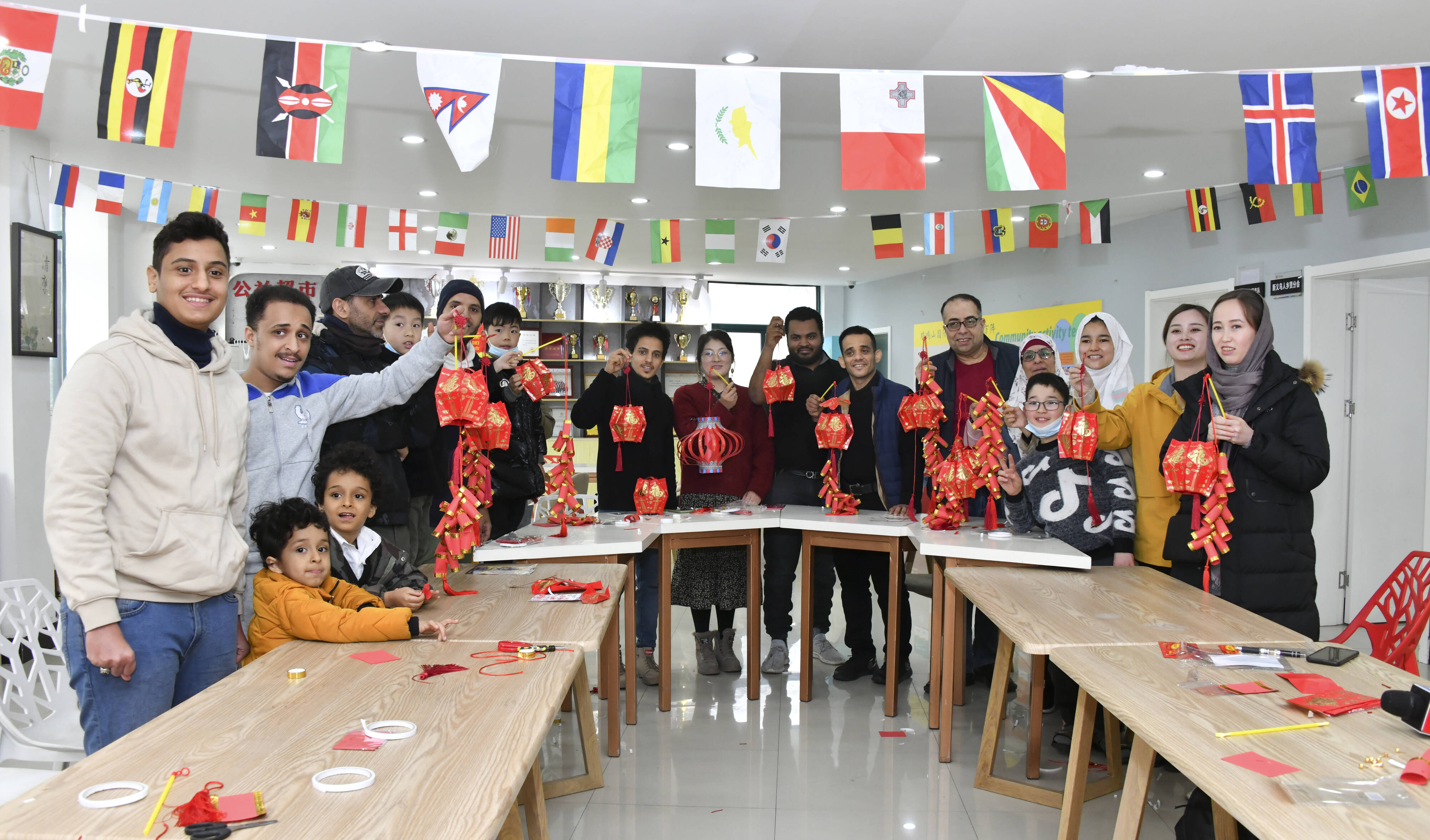 在义外籍人员展示自己制作的灯笼 王洁/摄