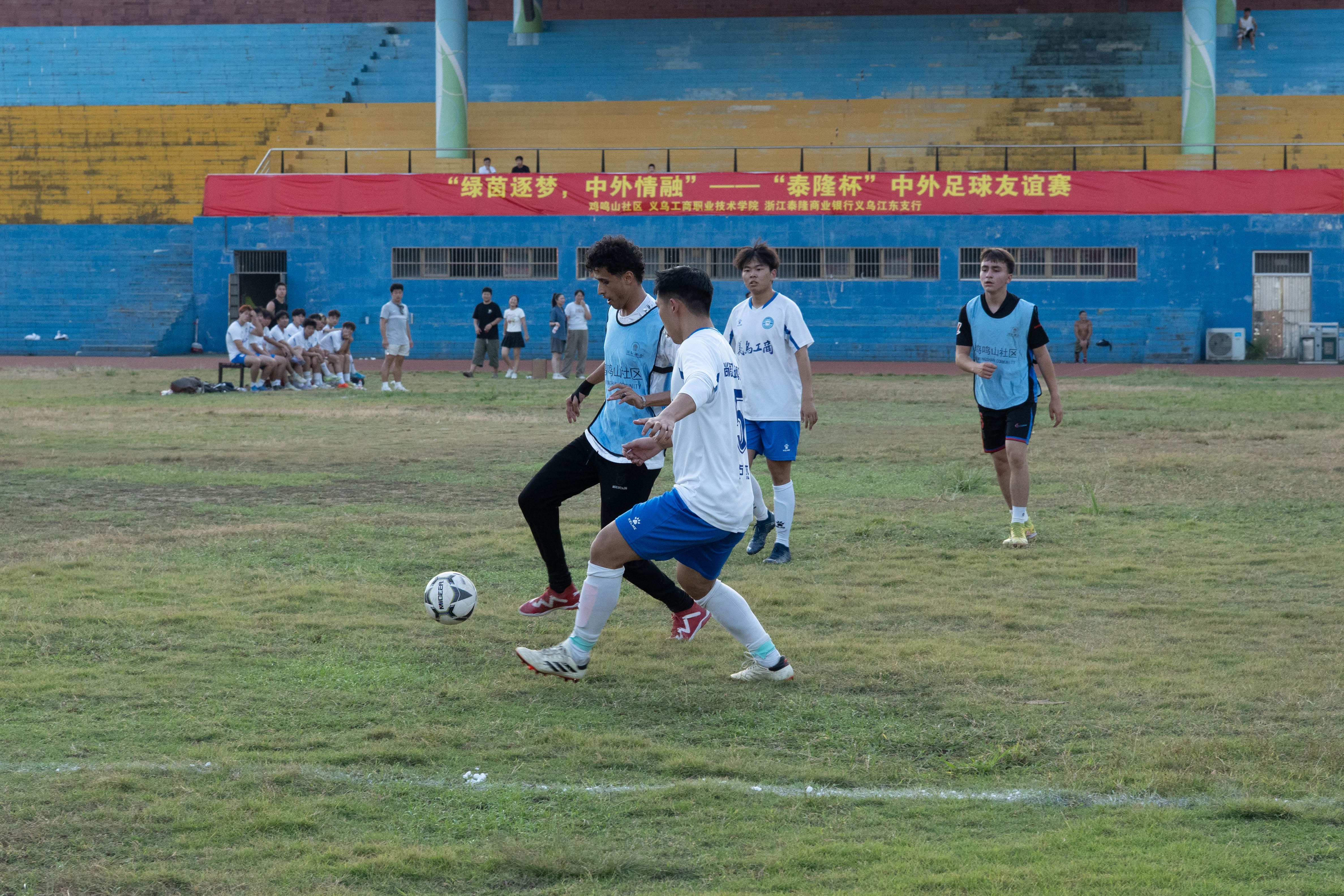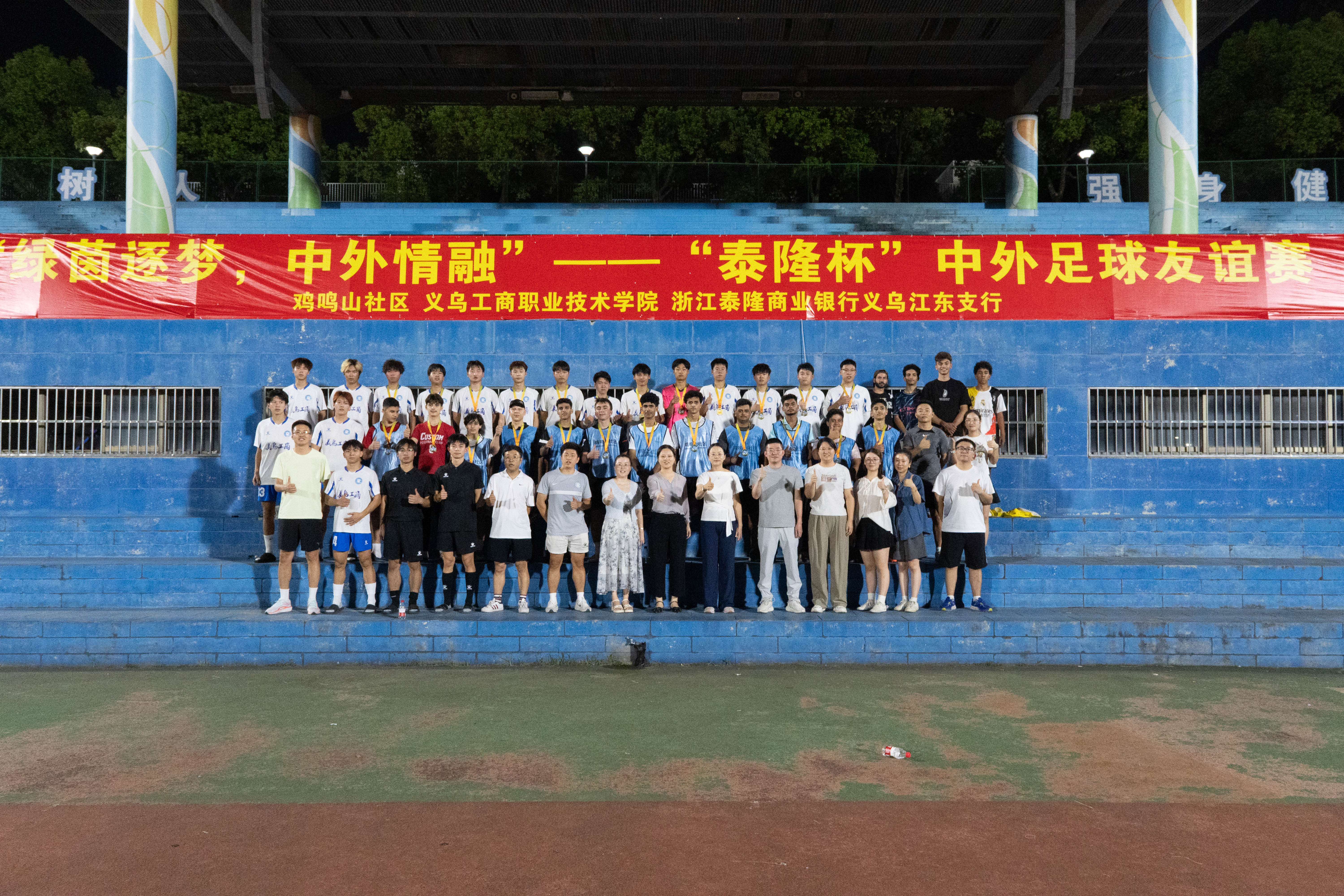 10月12日下午,义乌工商职业技术学院依山足球场上,呐喊与欢呼交织成跨语言的热情乐章。一场由鸡鸣山社区牵头,联合义乌工商职业技术学院、浙江泰隆商业银行义乌江东支行、同悦社工共同打造的“泰隆杯”中外足球友谊赛热血开赛。来自也门、叙利亚、埃及等共建“一带一路”国家的在义青年足球爱好者,与义乌工商职业技术学院尚德足球俱乐部男子足球队同场竞技,以足球为信使搭建文化交融之桥,用奔跑与协作诠释“一带一路”倡议中“民心相通”的青春内涵。