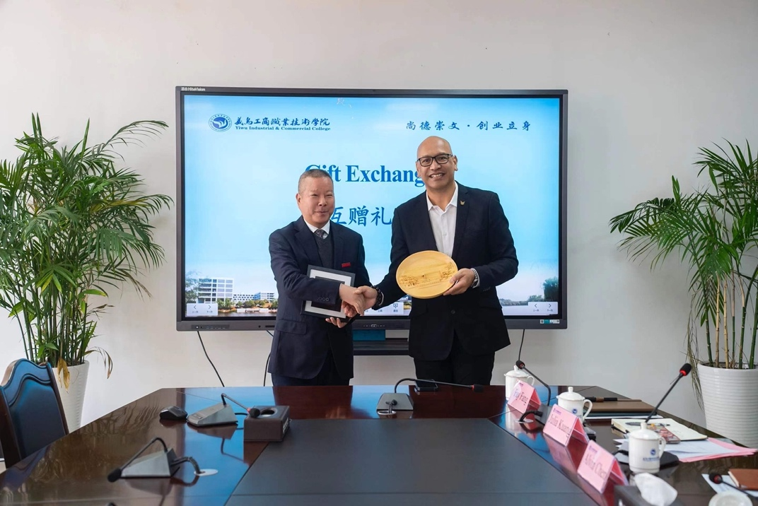 之后双方对合作办学项目运行情况进行回顾和总结,就项目存在的问题及未来深入合作方向进行了针对性讨论,最后达成了续办中外合作办学项目的合作共识,并将积极推动科研合作平台搭建,强化师生多元化交流,为中新教育和文化交流做出更大贡献。会上,双方学校互赠礼物,凝结并传递着两校深厚友谊。