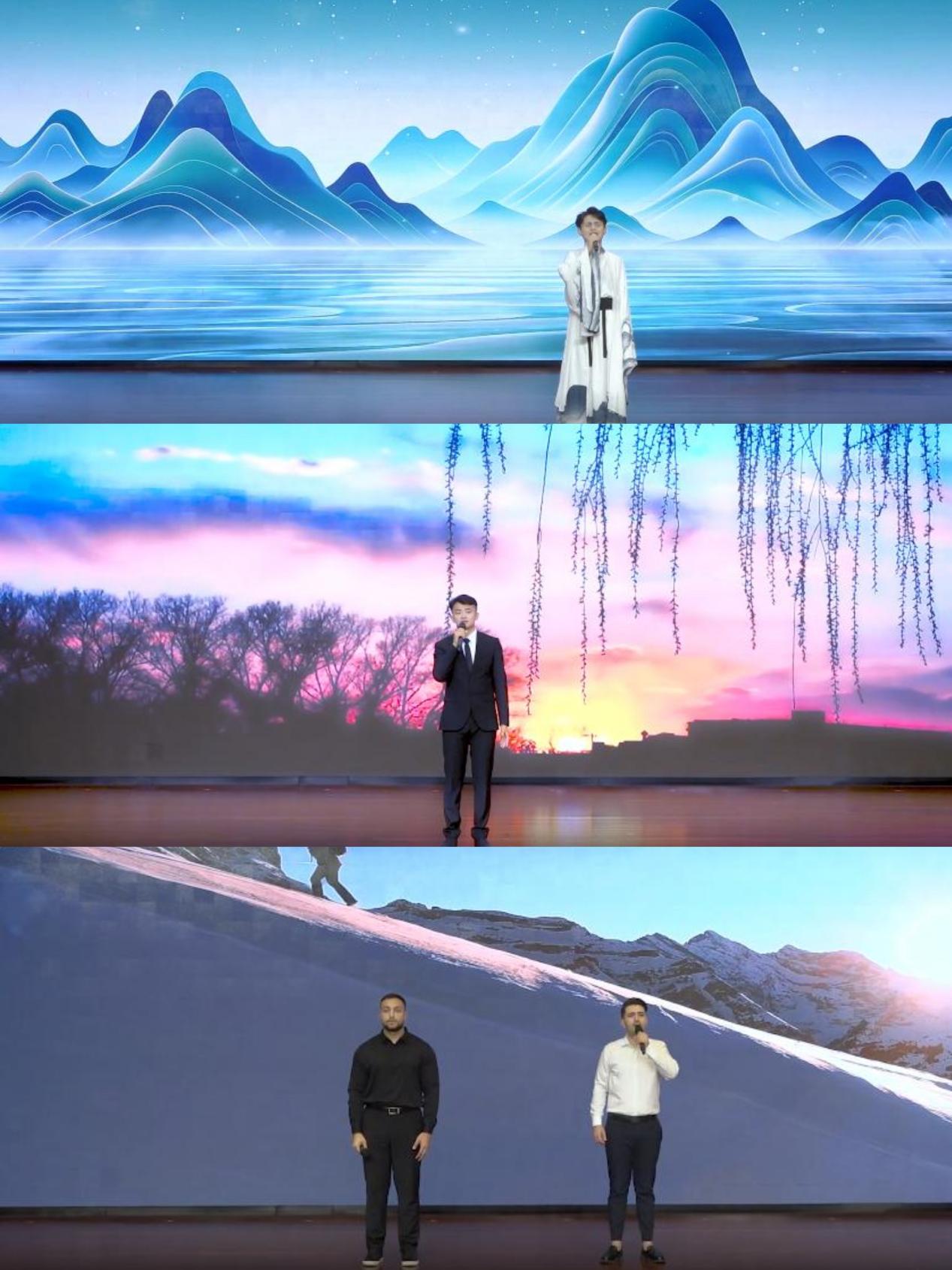此外,在经典诵读竞赛赛道中,我院共组织3组国际学生参赛,他们通过诵读具有社会影响力和典范价值的经典诗文,传承传播中华优秀传统文化。苏莱曼诵读《美哉,诗经》,将《诗经》中质朴的情感和生命哲思转化为可感知的现代艺术表达;塔克尔朗诵《再别康桥》,化身徐志摩,表达了自己对校园生活的热爱与不舍;安明、王亚瑟朗诵《我喜欢出发》,表达了自己对生命不断探索和出发的渴望。最终在29所高校提交的60件作品中,苏莱蒙和塔克尔获二等奖。