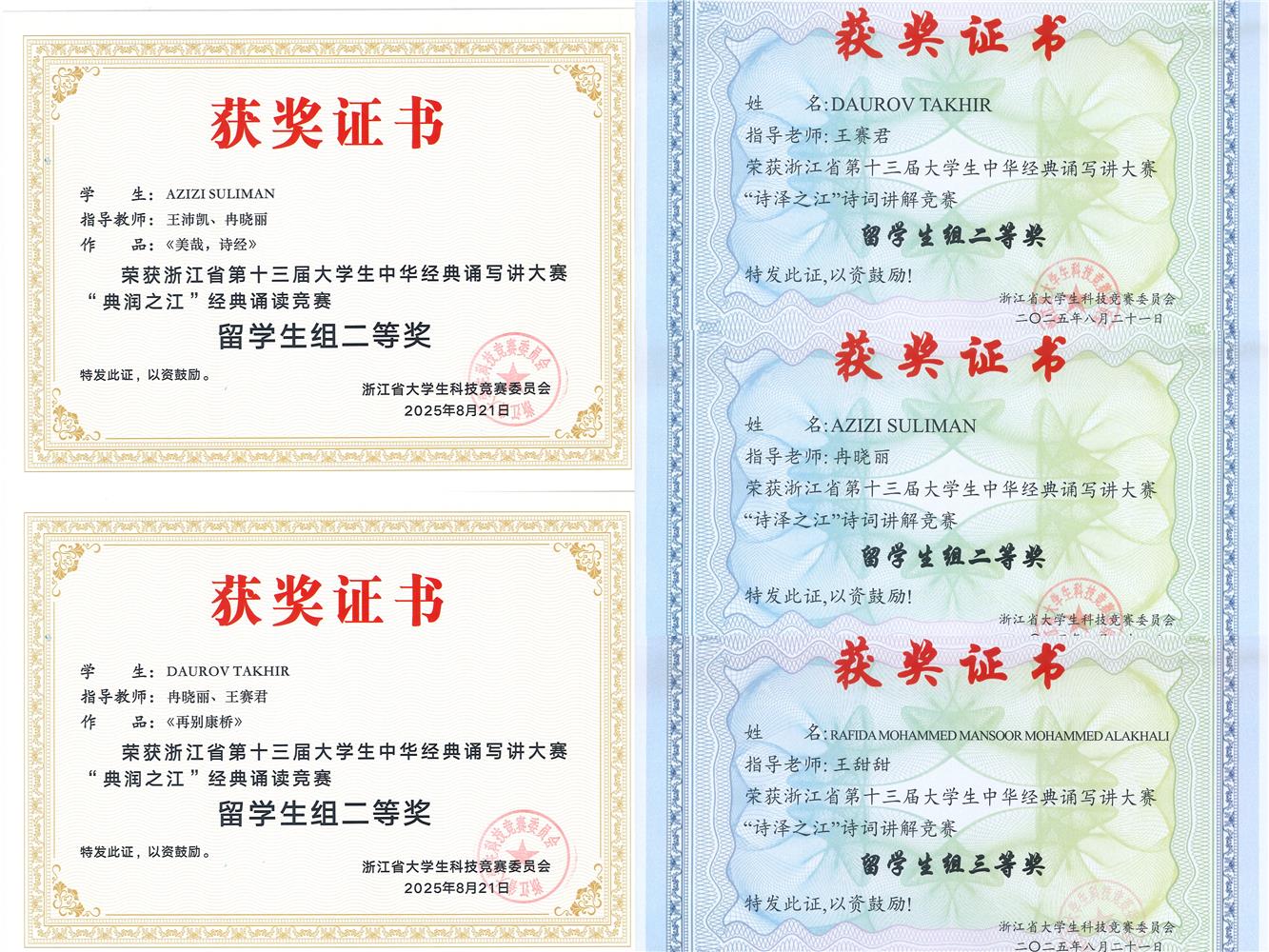 聚焦大赛 彰显风采 | 我校国际学生在浙江省中华经典大赛斩获5项大奖创历史新高