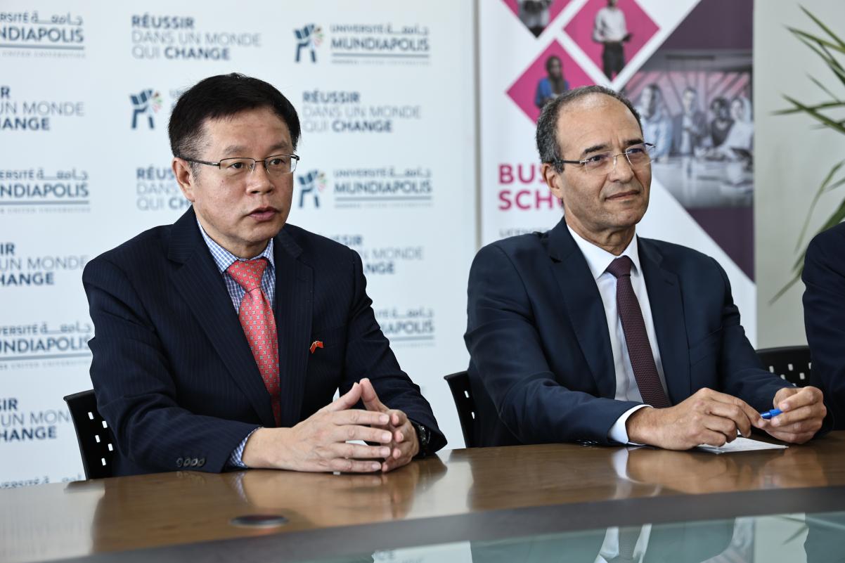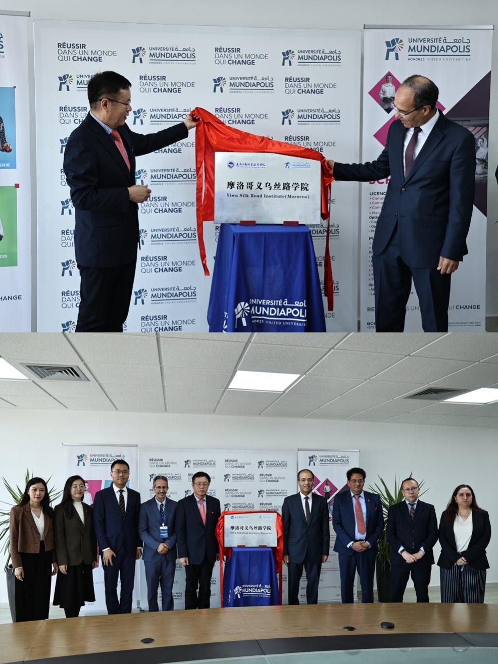 李大使与巴尔卡维校长为摩洛哥义乌丝路学院揭牌
