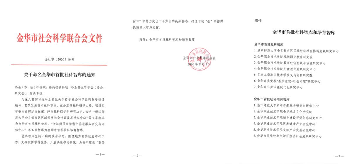 义乌创新研究院获金华市首批社科智库命名