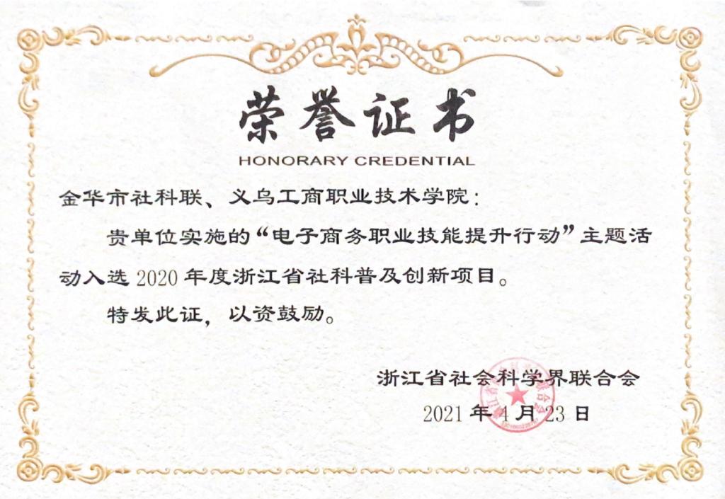 “电子商务职业技能提升行动”入选浙江省社科联社科普及创新示范推介项目